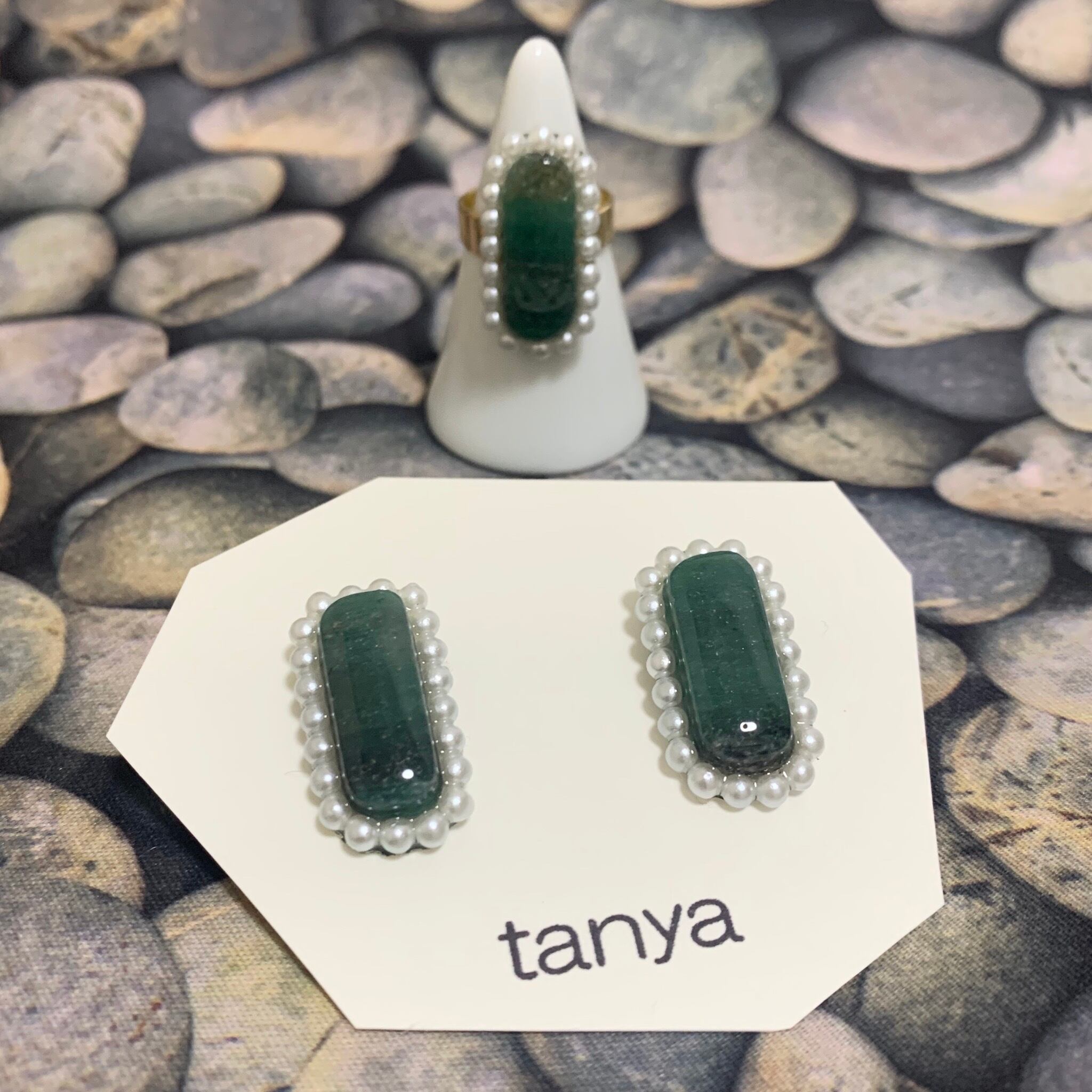 石のピアスはパールを含めた縦の直径が2.5cmほど。樹脂ポストです。
