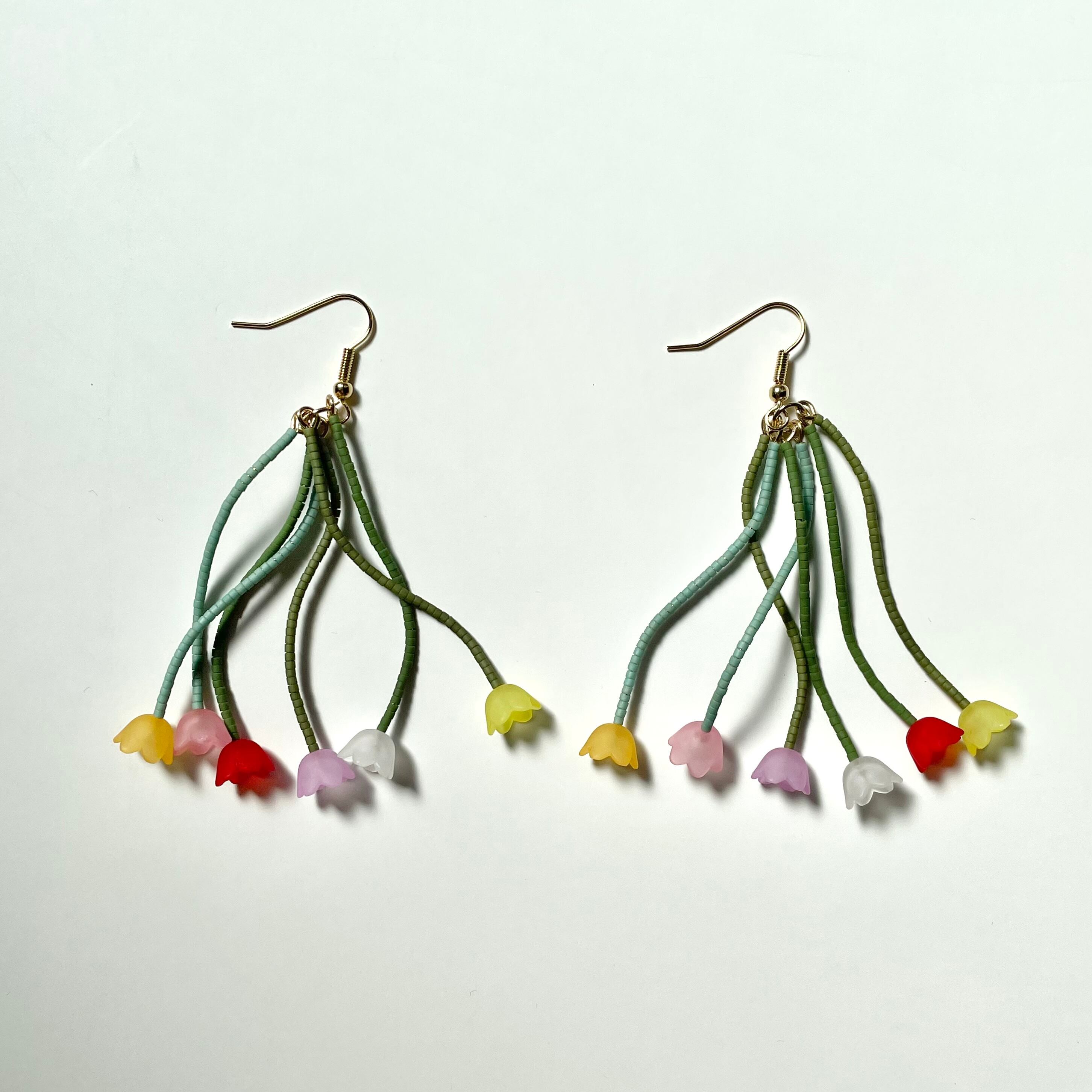 チューリップの花束をモチーフに作ったビーズのピアスです。