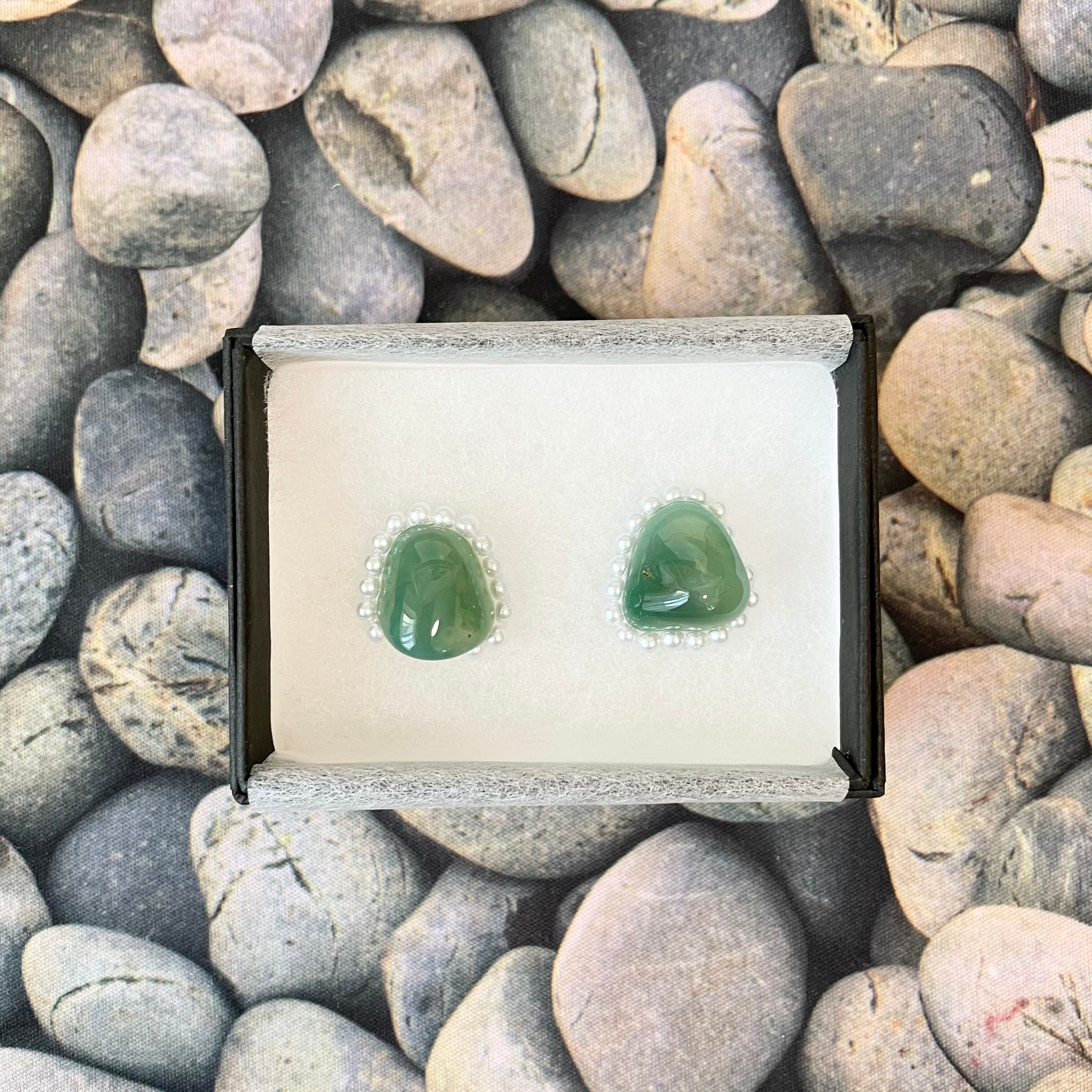 石にパールの飾りをあしらった耳飾りです。