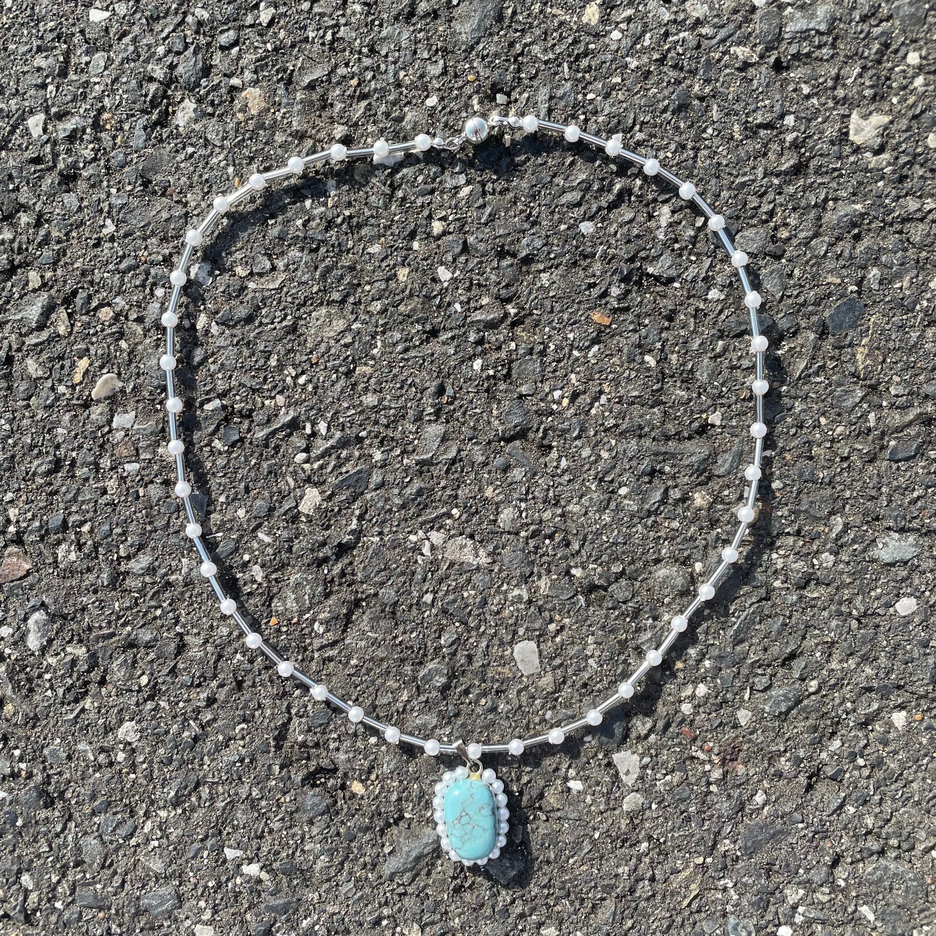 石とビーズのネックレス